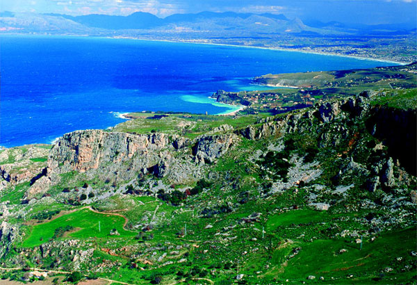The coastal landscape in the shape of an amphitheatre, of the gulf of Castellammare frames the town of the same name with its fishing port and the castle in very suggestive scenery, overlooked by the imposing Mount Inici and, in the east, the magnificent beaches. To the west the coast becomes rocky, and extremely jagged, characterised by high rocks overhanging the sea, with the stacks of Scopello, and the coast of the Zingaro with coves of extraordinary beauty.